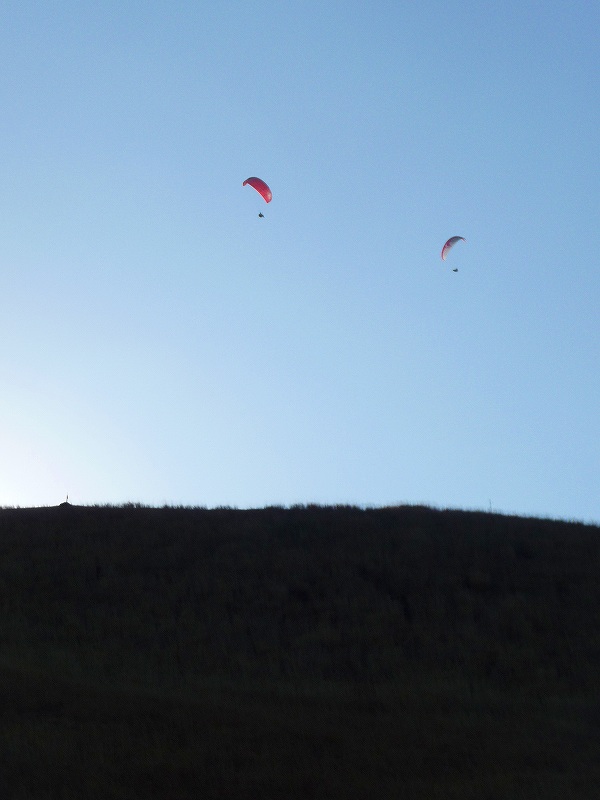 夕方、宮田さんは明日のセミナーの為、浅間山でのテストフライト。トップラン2回。最後は吹き降ろしの風になり、白田にランディング。