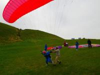 午前中は晴れていて南の風強く、パラグライダーは半分諦めモード。