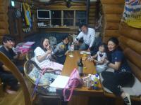 夜はみんなで温泉に行って、うな瀬でウナギ食べて、ログに戻ってきてきりちゃんのお誕生日パーティーをして、花火をやりました。