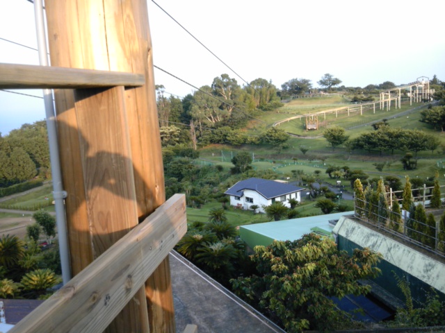 夕方、グランパル公園に新しいアトラクション「ジップライン」ができたというので、みんなで遊びに行ってきました。