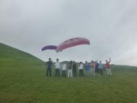 雨が降って2回ほど雨宿りしたけれど、そのうちちょっとくらいの雨ならやっちゃう?ってなって後半は雨もやみ、たくさん飛んでグライダーも乾きました。