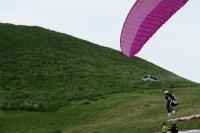 藤川さんがみんなの前で山頂駐車場からデモフライト~。