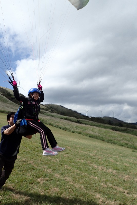 9月に半日体験に来てくれた下田のNちゃんは今日はタンデムの予定で来てくれましたが、なかなか風が弱まらず風待ちの間にちょこっと半日体験で飛びました。