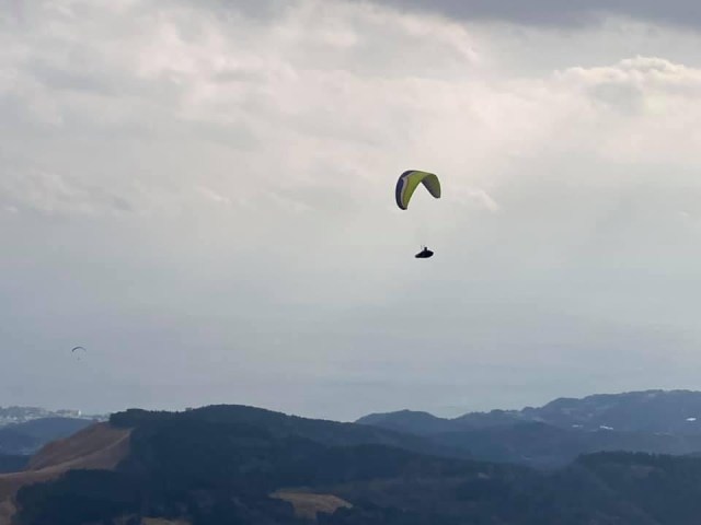 午前中は北東の風強く、大峰練習場で立ち上げ練習。ミニパラでちょうど良い風でした。