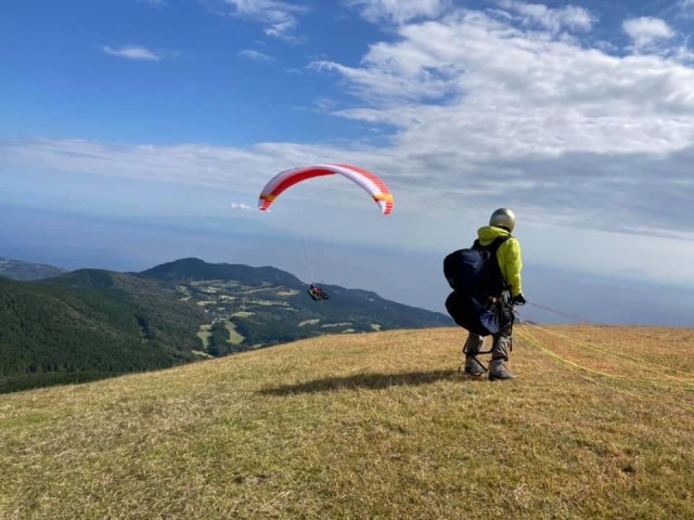 タンデムさんも大勢の観光客に見送られテイクオフです。